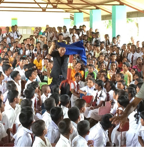 以前、スリランカの学校を訪問した際に私のショーを少し披露させていただきました。言葉が通じない子ども達みんなが、目をキラキラさせながら笑顔になっていく姿は今でも忘れることができません。言葉の壁を破り、現地の子ども達と「笑顔」というキーワードで融合できた、そんな不思議な体験でした。